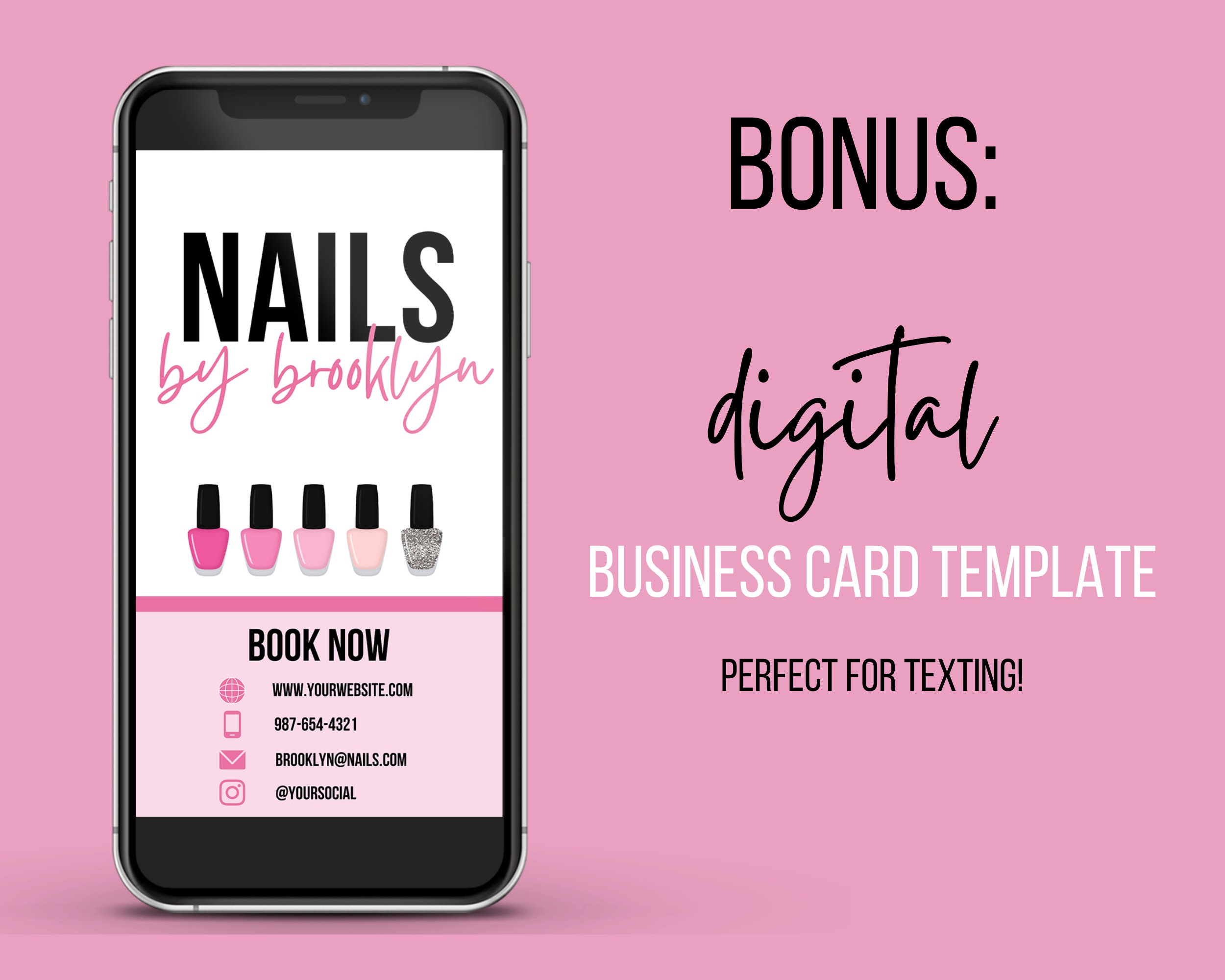 Editable Nail Artist Business Card Template Professionally Etsy Business Cards Nails nail your artful introduction and score new clients with a polished set of nail design business cards made with professional. Browse thousands of nail business card designs. check out our nail business cards selection for the very best in unique or custom, handmade pieces from our templates shops. design and create stunning nail art business cards for. Business Cards Nails.